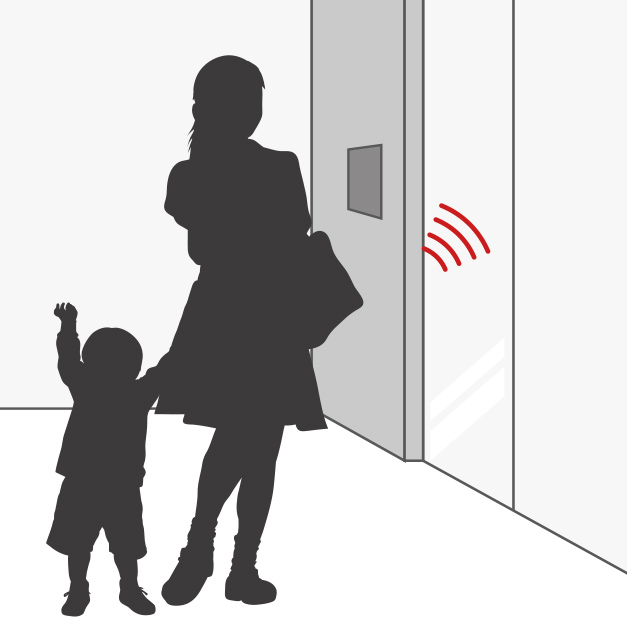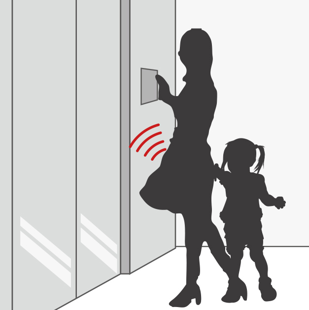 Tebraキーの携帯で、エレベータードアの開閉操作が可能です。部外者によるエレベーター操作、侵入を防ぎます。