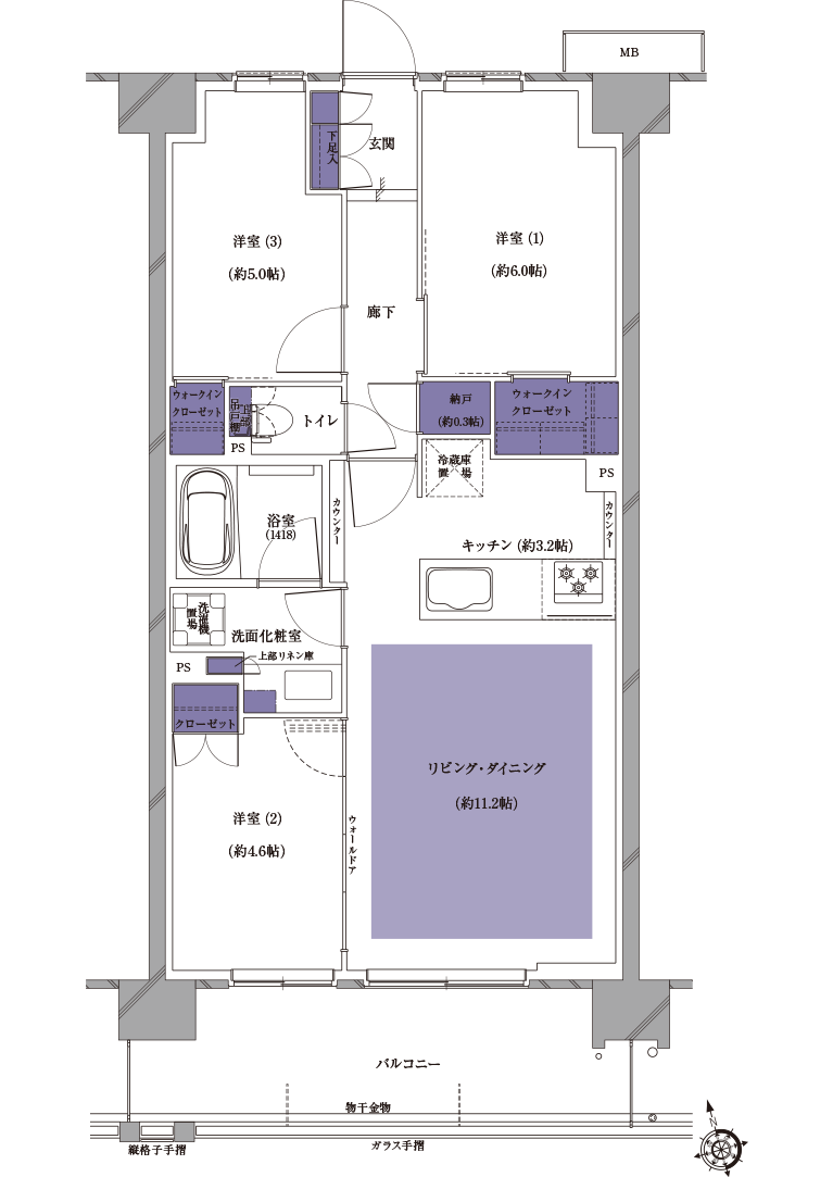 WIC:ウォークインクローゼット、SIC:シューズインクローゼット、N:納戸、ITR:インナートランクルーム