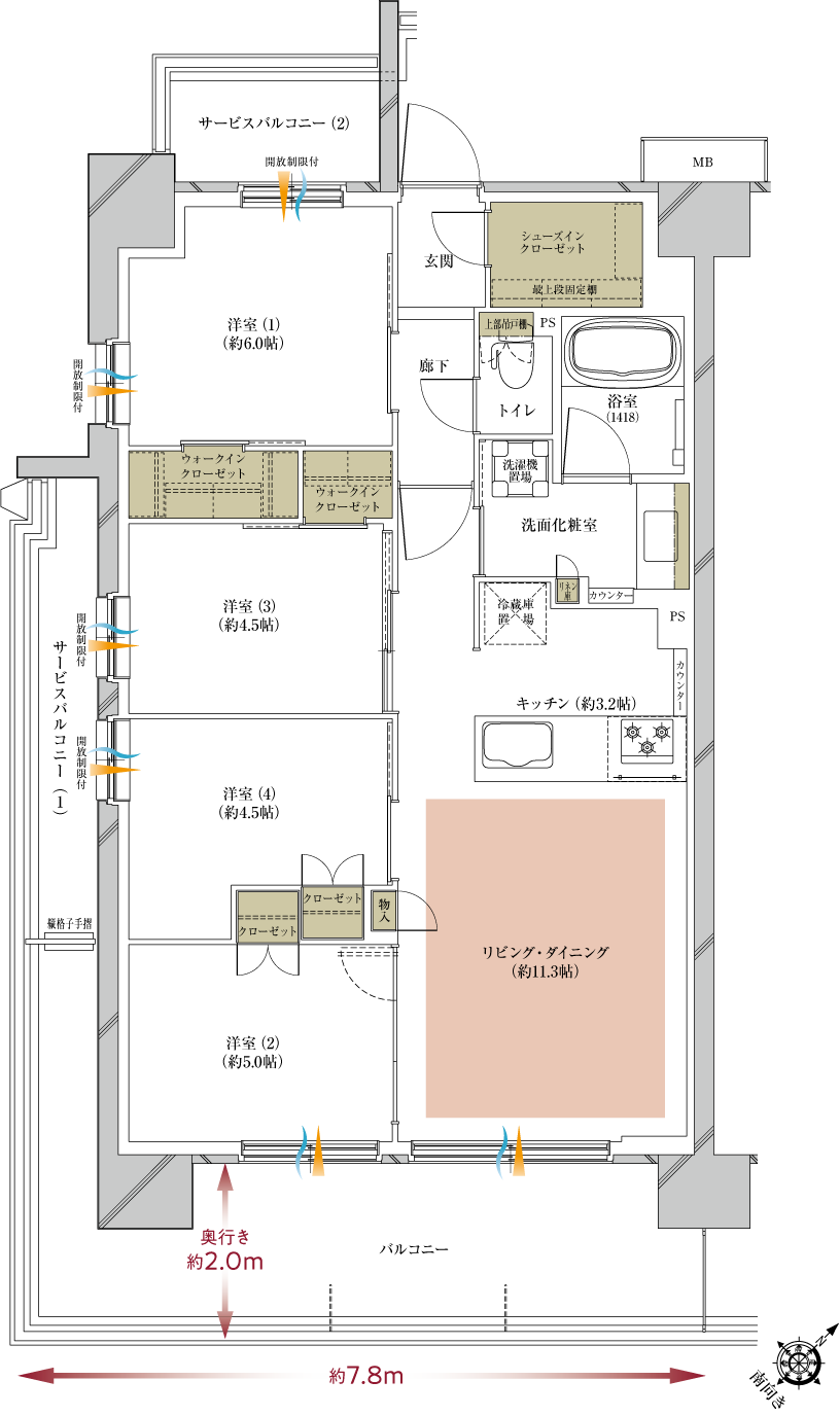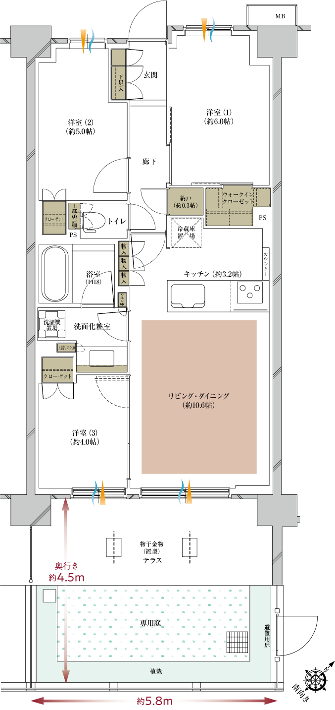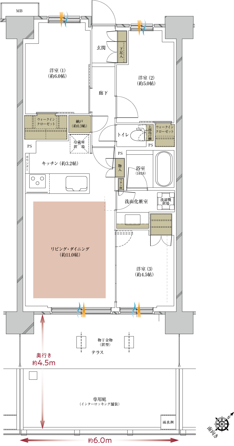 WIC:ウォークインクローゼット、SIC:シューズインクローゼット、N:納戸
