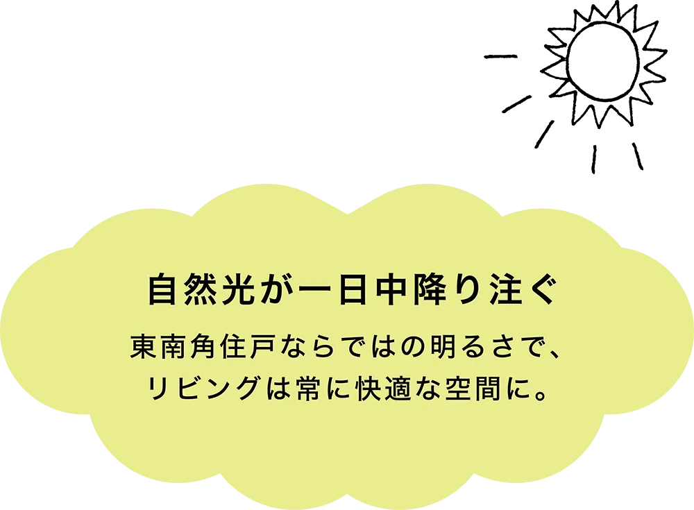 最大の魅力は、東南角部屋という立地がもたらす圧倒的な開放感です。