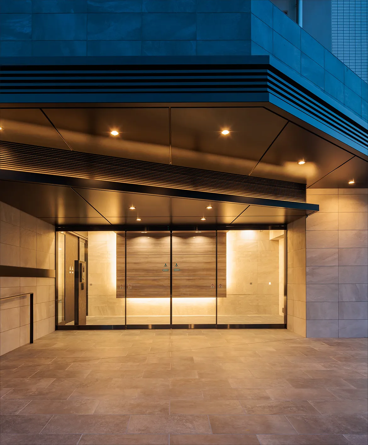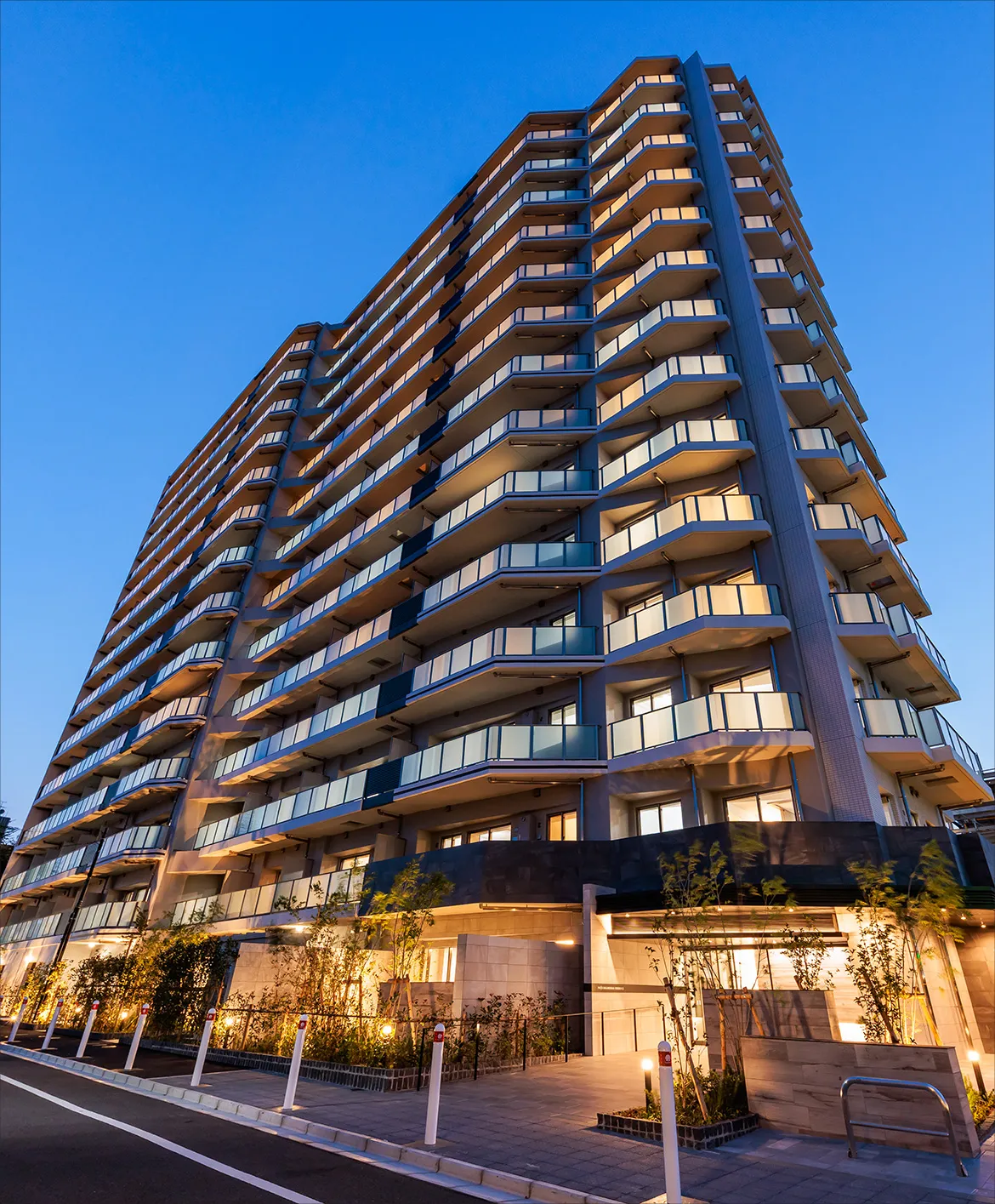 - ※掲載のエントランス完成予想CGは、計画段階の図面を描き起こしたもので実際とは異なります。予めご了承ください。なお、植栽は特定の季節を特定するものではありません。また、敷地内の植栽の樹種、大きさについては未確定となっており、竣工時には完成予想CG程度には成長しておりません。