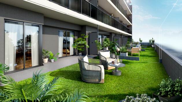 1階住戸にはプライベートガーデンをご用意。開放的なアウトドア空間が楽しめます。 ※一部住戸。