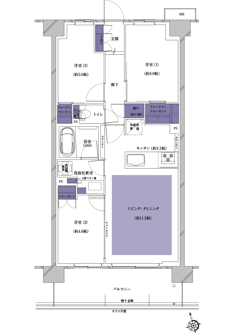WIC:ウォークインクローゼット、SIC:シューズインクローゼット、N:納戸、ITR:インナートランクルーム