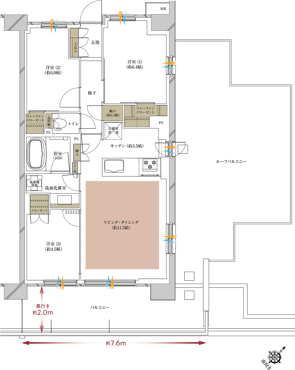 WIC:ウォークインクローゼット、SIC:シューズインクローゼット、N:納戸