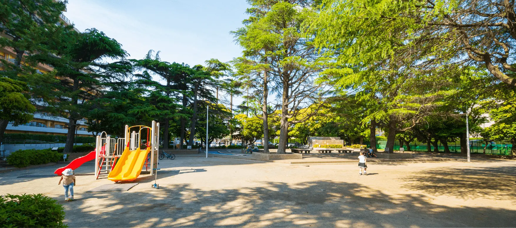 自然豊かでじゃぶじゃぶ池やローラーすべり台、コンビネーション遊具、テニスコートなど子供から大人まで楽しめる施設が揃っています。 園内には「横須賀スタジアム」もあり、横浜DeNAベイスターズのファームチームの試合観戦や様々なスポーツを楽しむことができます。