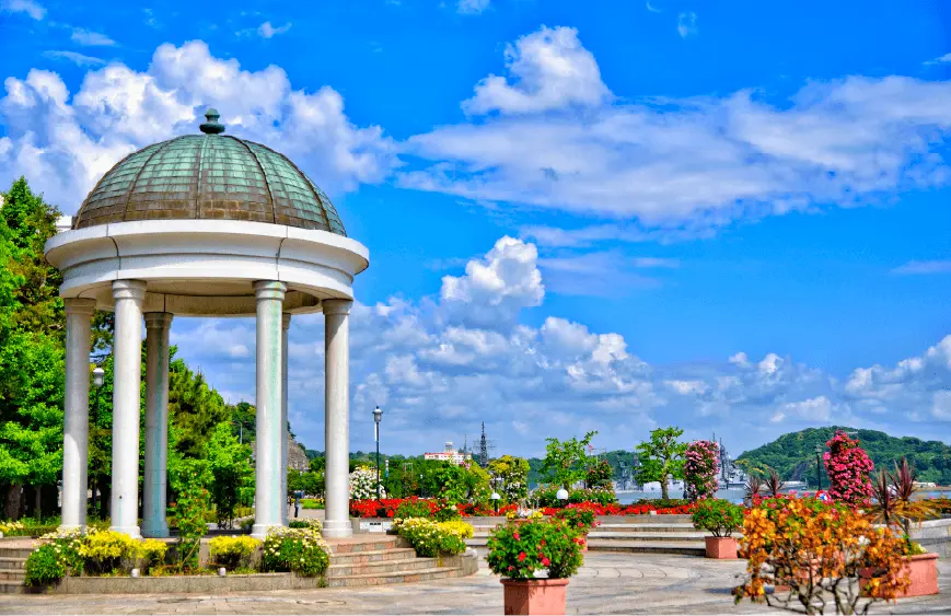 横須賀の海を眺めながらフランス式花壇や噴水、