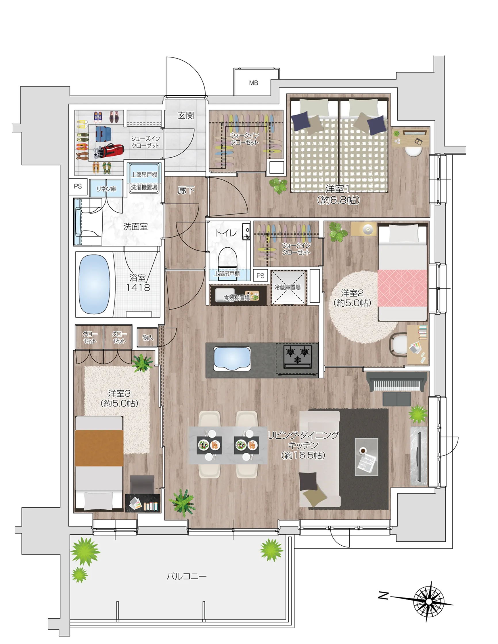 - ※間取り図内のイラストで描かれた家具等は配置の一例で販売価格には含まれません。