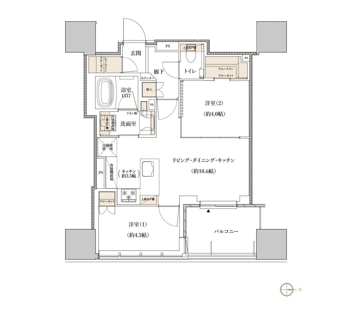 ※掲載の間取図・面積等は設計段階の設計図を元に描いたもので、今後変更になる場合がございます。予めご了承ください。