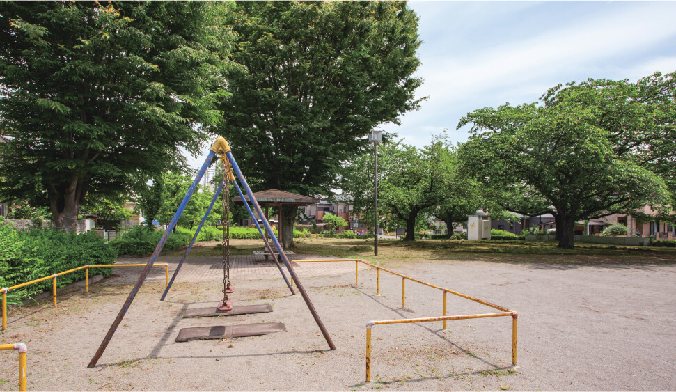 砂場・自由広場・ターザンロープなどの遊具に加え、自由広場に芝生広場もある公園です。