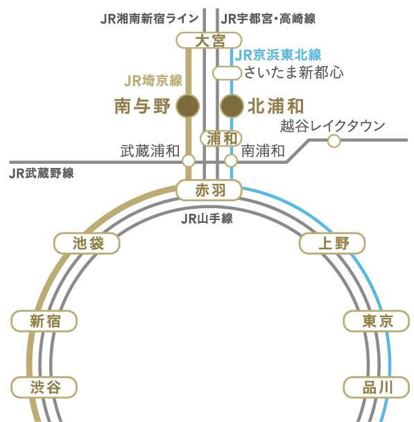 JR「北浦和」駅・JR「南与野」駅の2駅2路線を使い分け、そして使いこなす暮らし。