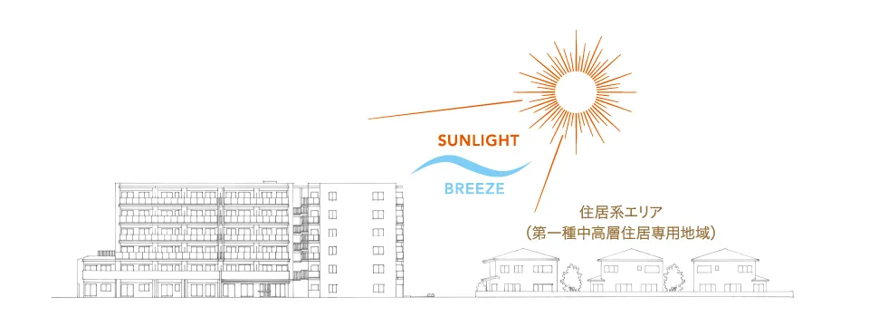 落ち着きある第一種中高層住居専用地域の一角に、南・東・西3方面道路の角地を得て誕生する「プレシス与野本町」。その恵みを活かした2棟構成のプランニングに加え、敷地内駐車場を確保するなど、快適な暮らしを実現する確かな機能を配しました。