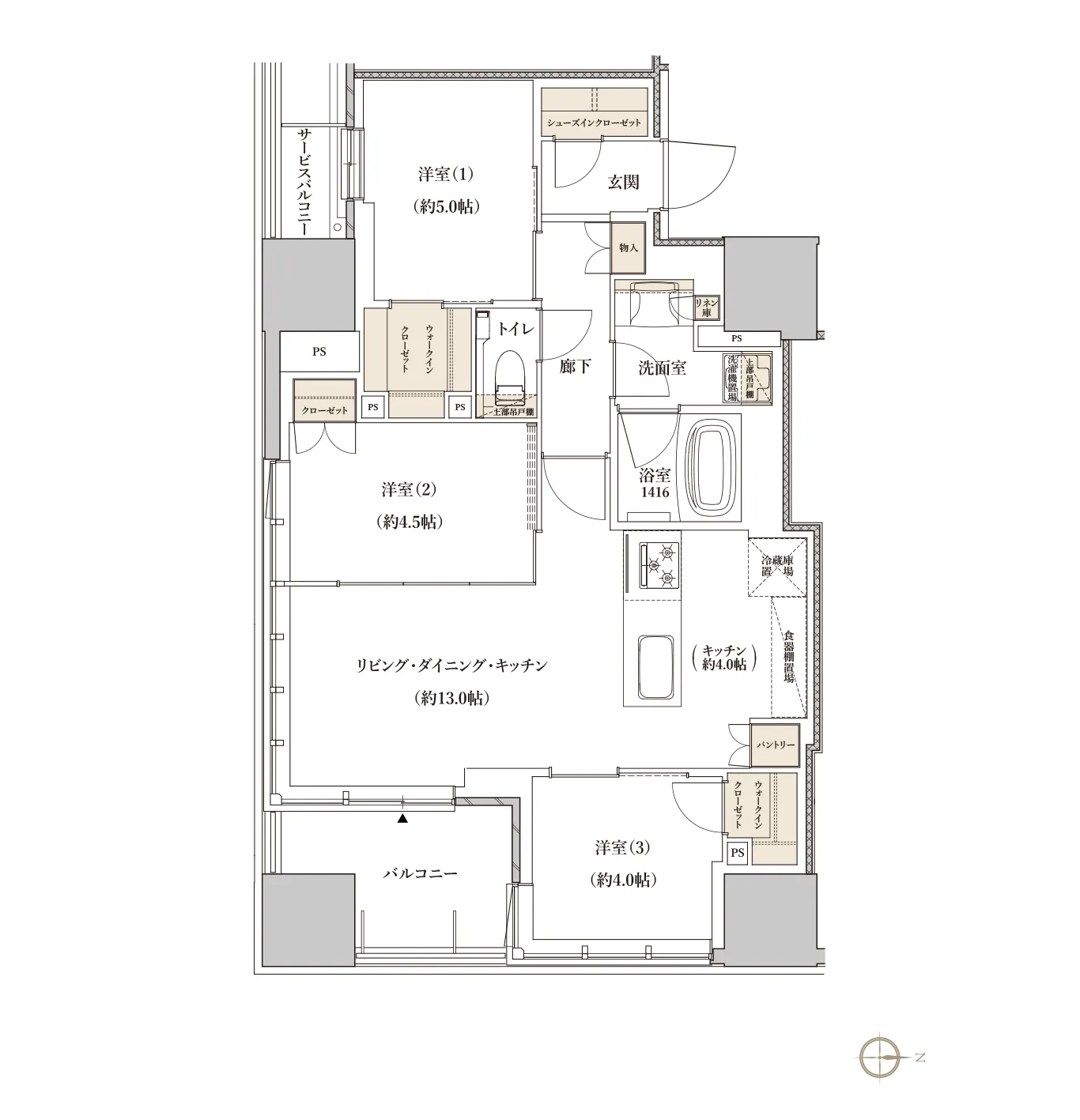 ■ サービスバルコニー面積/1.55㎡(約0.46坪)