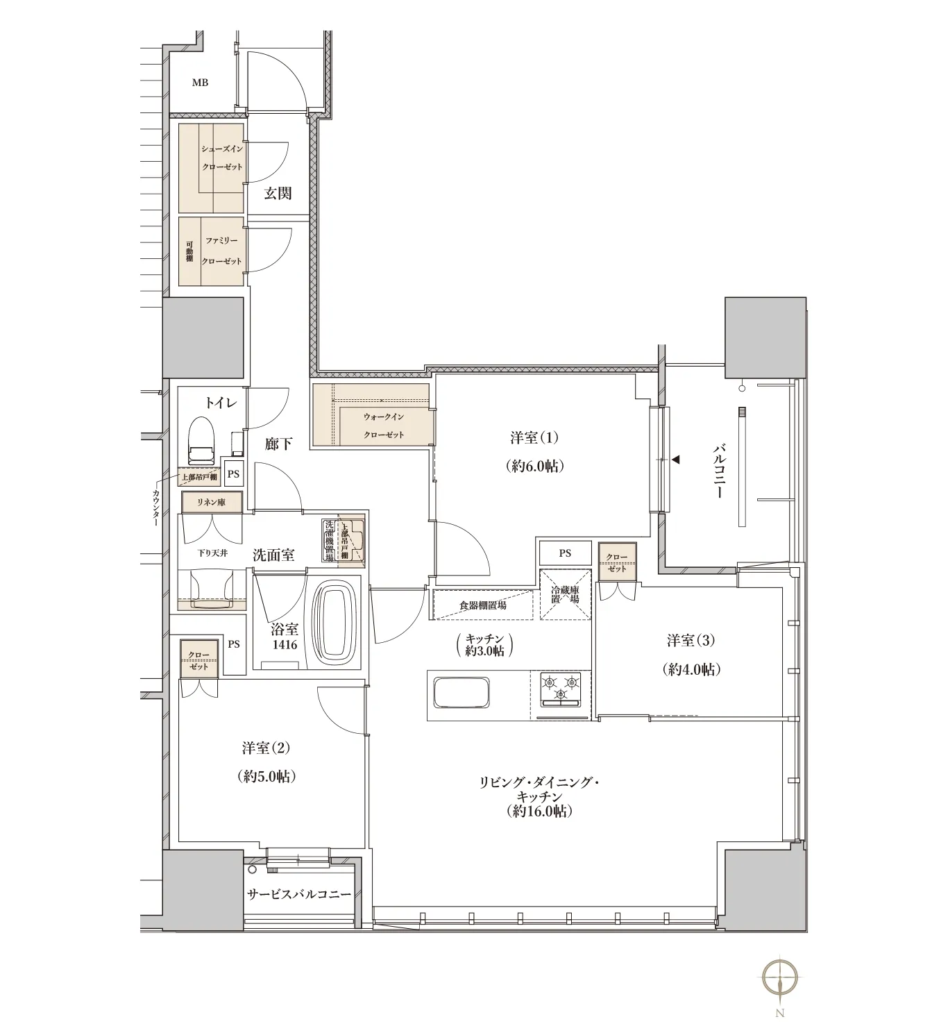 • ※掲載の間取図・面積等は設計段階の設計図を元に描いたもので、今後変更になる場合がございます。予めご了承ください。