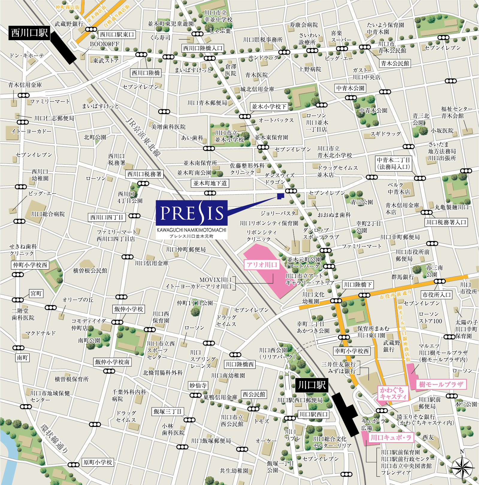 現地周辺にはさまざまなジャンルの店舗が揃った「アリオ川口」があり いつ行っても新鮮な気持ちで施設を楽しむことができます。 また、深夜0時まで営業の「ベルク中青木店」も近くにあるため 毎日の暮らしに便利です。 少し足を伸ばすと「かわぐちキャスティ」や「樹モールプラザ」が利用でき、 普段と違った商品ラインナップの買い物を満喫できます。