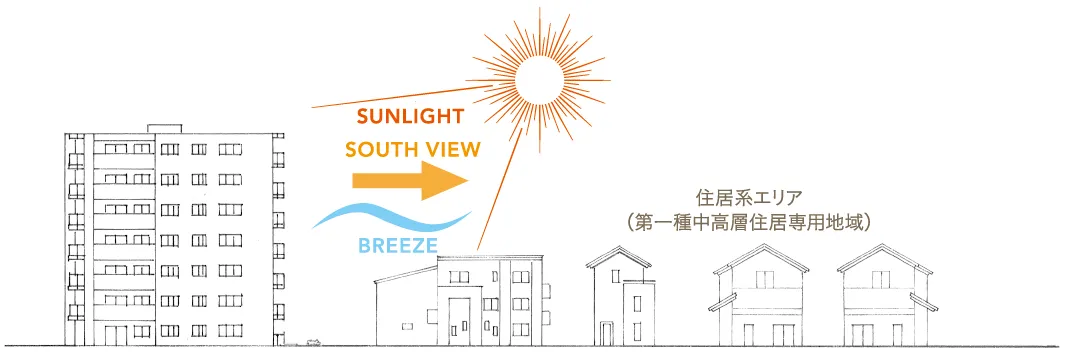 周辺には高層の建物がないため、上層階ではのびやかな眺望も期待できます。