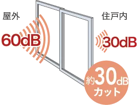遮音性に配慮し、遮音性能JIS規格T2等級程度の防音性能を備えた高性能サッシを採用。