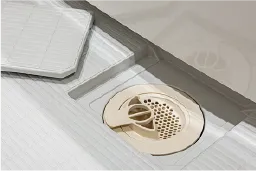 水の表面張力を壊す効果で乾きやすい床。従来よりもさらに滑りにくく、また同一方向にそろうグリッド加工によってお掃除もしやすくなりました。