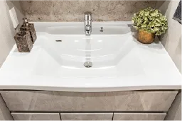 ゆるやかにラウンドしたボウルと光沢仕上げの天板が、高級感を演出。耐久性や耐候性に優れており美しさを保つことができます。