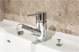 浴槽のボタンをプッシュするだけで、排水口を開閉。手を濡らさずにお湯を抜くことができます。