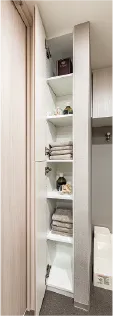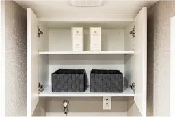 サニタリー用品やタオルなどを収納できるリネン庫を設置。洗面室をすっきり保つことができます。
