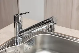 蛇口の先に浄水器を内蔵、ワンタッチで切り替えができます。また、浄水器ごとホースが引き出せます。