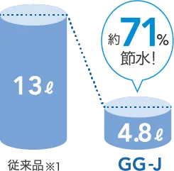 環境に優しく経済的。従来品に比べ約71%の超節水が可能に、水道代年間約14,200円お得です。