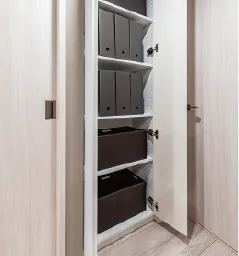掃除機や日々使う物のストックなど、簡単に出し入れできる使い勝手の良い収納です。
