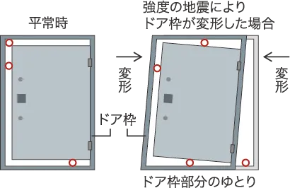 ドア枠の歪みにより、扉が開かなくなり、居住者を室内に閉じ込めてしまうような事態を軽減します。