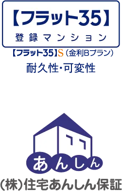 この物件は、マンション全体で【フラット35S】の技術基準に適合する予定として住宅金融支援機構に登録したマンションです。フラット35S登録マンションについて、詳しくはフラット35サイトをご覧ください。