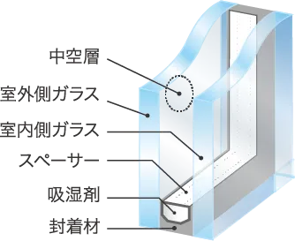 2枚のガラスの間に空気層を設けた複層ガラスを採用。高い断熱性を発揮し省エネにも貢献します。