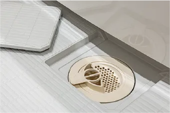 水の表面張力を壊す効果で乾きやすい床。従来よりもさらに滑りにくく、また同一方向にそろうグリッド加工によってお掃除もしやすくなりました。