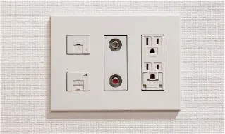 電源コンセント、TVアウトレット・LANをひとまとめにしたマルチメディアコンセントを、各居室に設置。