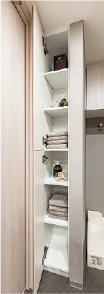 サニタリー用品やタオルなどを収納できるリネン庫を設置。洗面室をすっきり保つことができます。