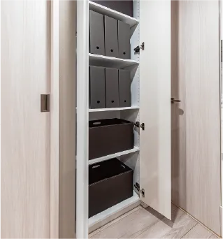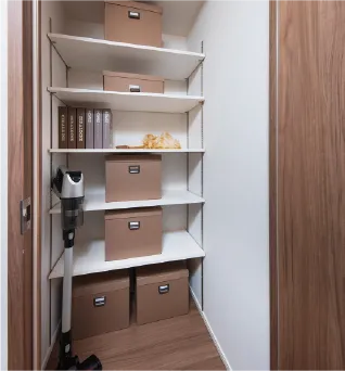 掃除機や日々使う物のストックなど、簡単に出し入れできる使い勝手の良い収納です。