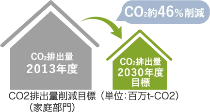 日本は、2050年には温室効果ガスの排出を80%削減するという目標に向けて、2030年までに2013年度比で温室効果ガスの排出を46%削減する新たな目標を掲げています。政府による「ゼッチマンション」の普及に向けた取り組みは本格化しており、今後CO2などの温室効果ガス排出量を抑える住まいがスタンダードになるとされています。