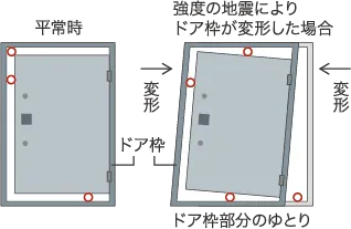 ドア枠の歪みにより、扉が開かなくなり、居住者を室内に閉じ込めてしまうような事態を軽減します。
