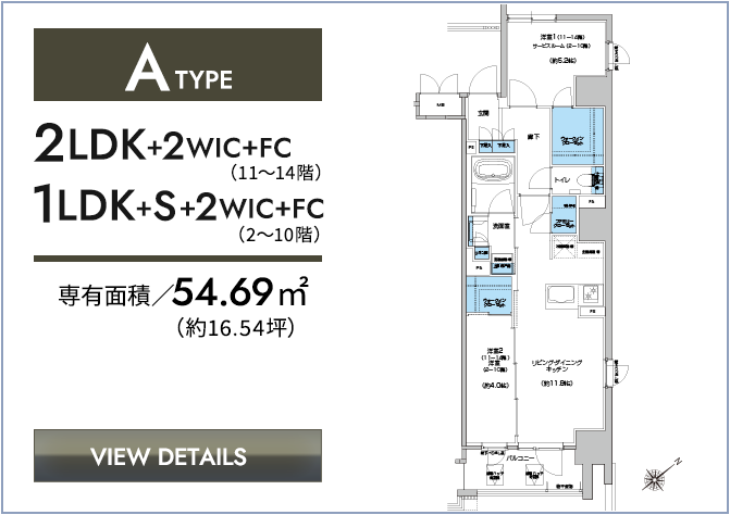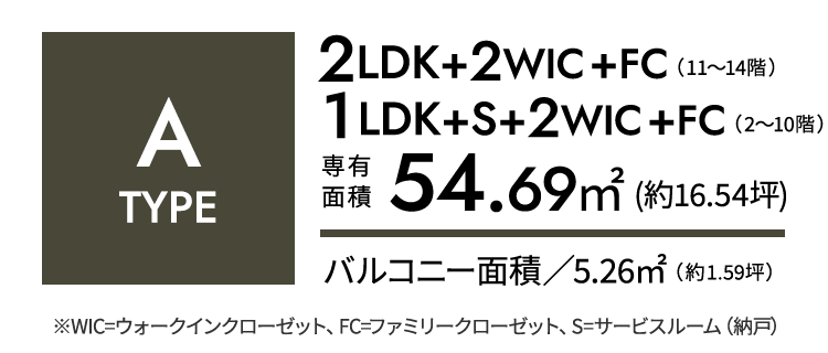 ※WIC:ウォークインクローゼット、SIC:シューズインクローゼット、FC:ファミリークローゼット、S:サービスルーム(納戸)