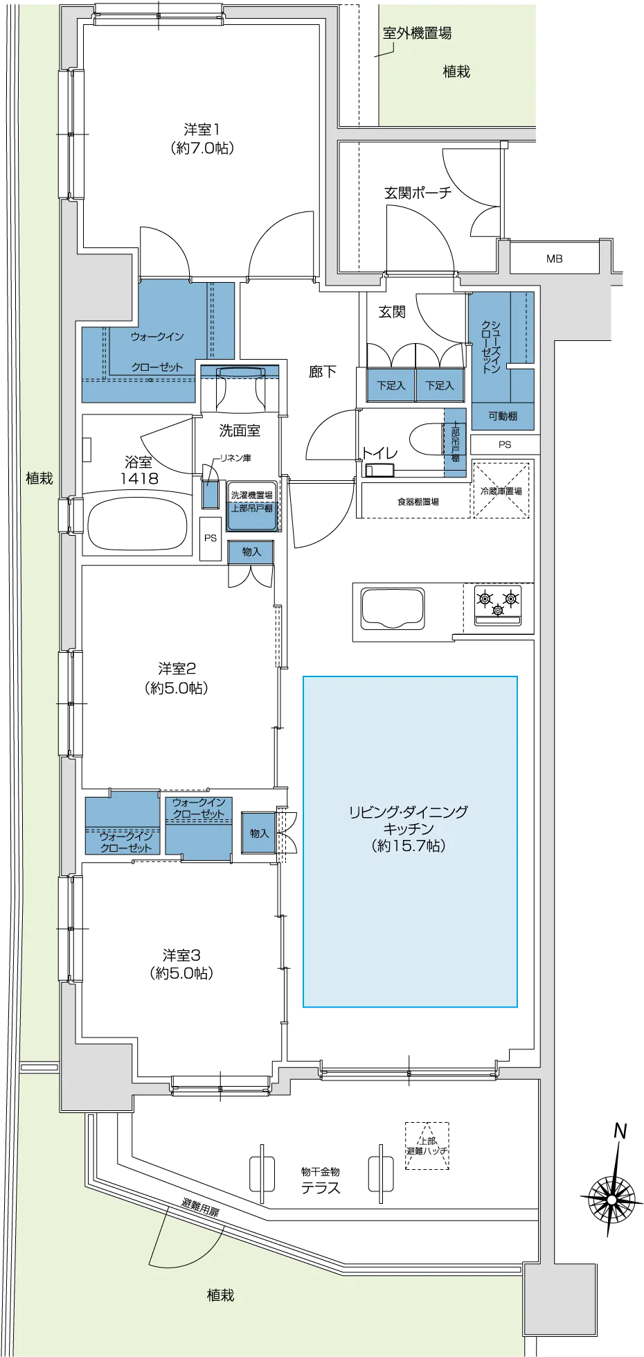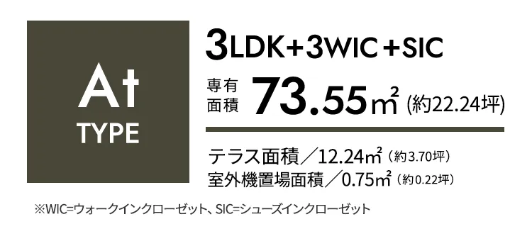 WIC:ウォークインクローゼット、SIC:シューズインクローゼット、S:サービスルーム(納戸)