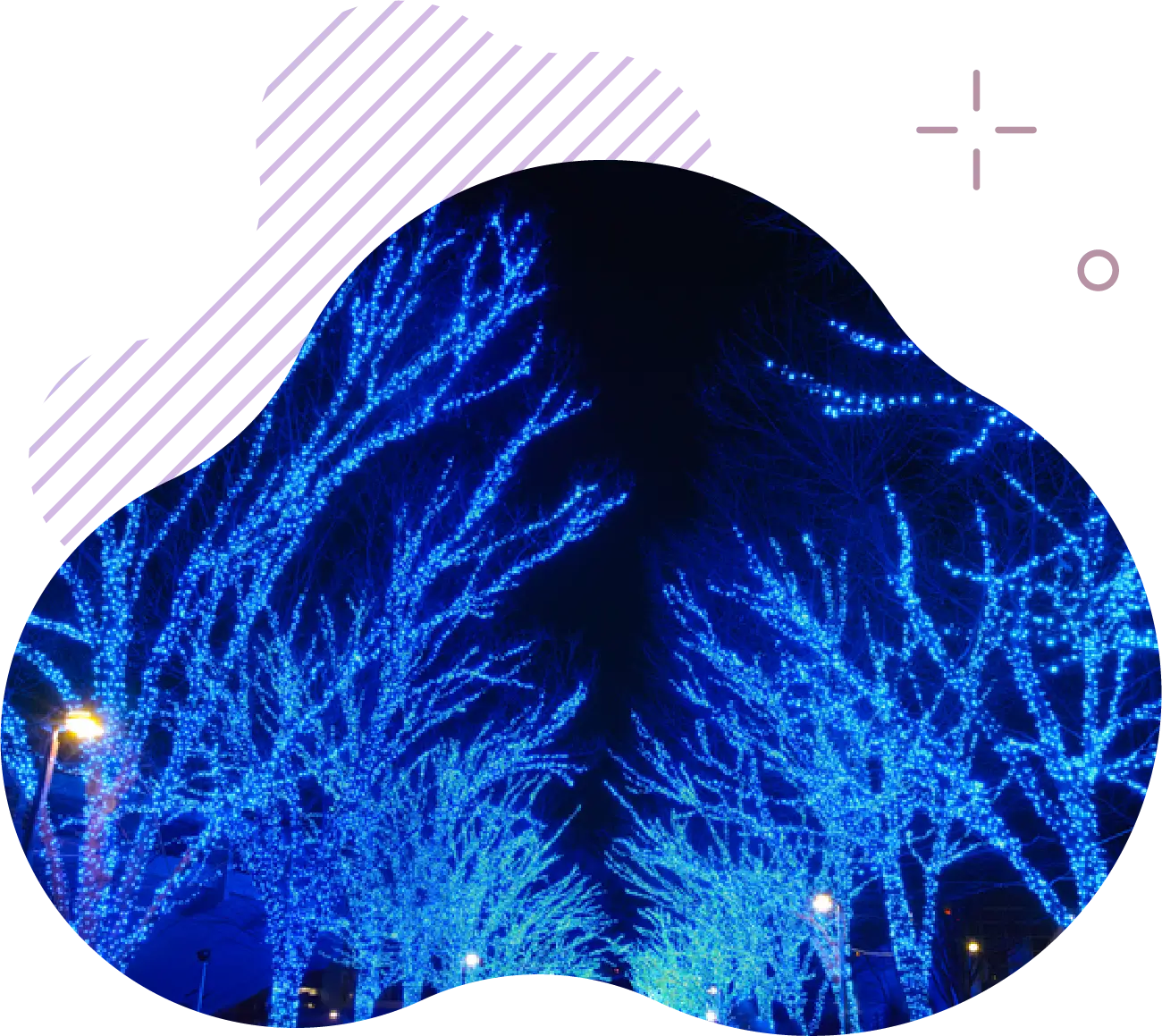 山間に6メートルのツリーをはじめとした、約80,000球のイルミネーションが輝きます。都会とはひと味違った自然の中のイルミネーションを楽しむことができます。
